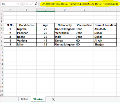 We need to know below candidate vaccination detail by using VLOOK UP Formula